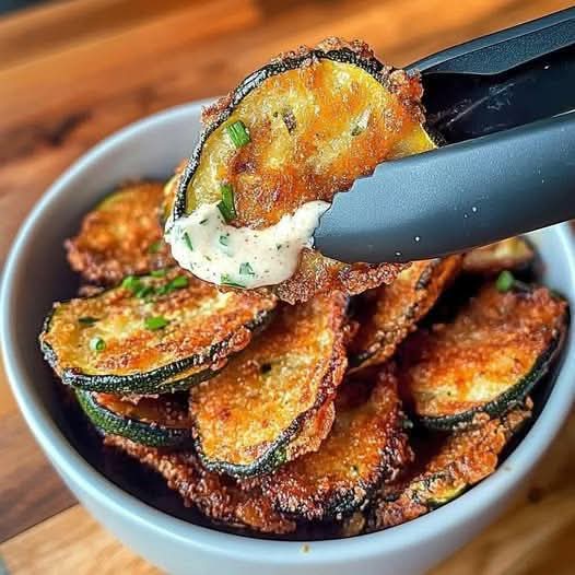 Fry: Heat about 1/2 inch of oil in a large skillet over medium-high heat. Fry zucchini slices in batches for 2–3 minutes per side until golden and crispy. Transfer to a paper towel–lined plate to drain excess oil.