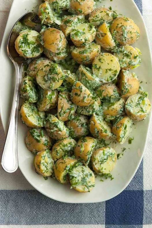 These Mediterranean Crispy Herb Potatoes are golden, tender on the inside, and tossed in a creamy herb dressing that’s both tangy and fresh. The combination of roasted baby potatoes and a yogurt-based herb sauce makes this dish light yet satisfying — a perfect side for grilled meats, fish, or vegetarian mains. The mix of parsley, dill, chives, and scallions gives it a bright, garden-fresh flavor that feels right at home on a Mediterranean table.