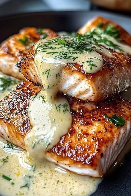 This dish is a Mediterranean-inspired way to enjoy salmon, with golden, crispy skin and a bright, creamy dill sauce that enhances the fish’s natural flavors. The salmon is simply seasoned with paprika, garlic, and a touch of olive oil, then seared to perfection. The dill cream sauce adds tang and freshness, making it ideal for a weeknight dinner or an elegant meal for guests. Light, flavorful, and versatile, it pairs beautifully with roasted vegetables, couscous, or a simple salad.