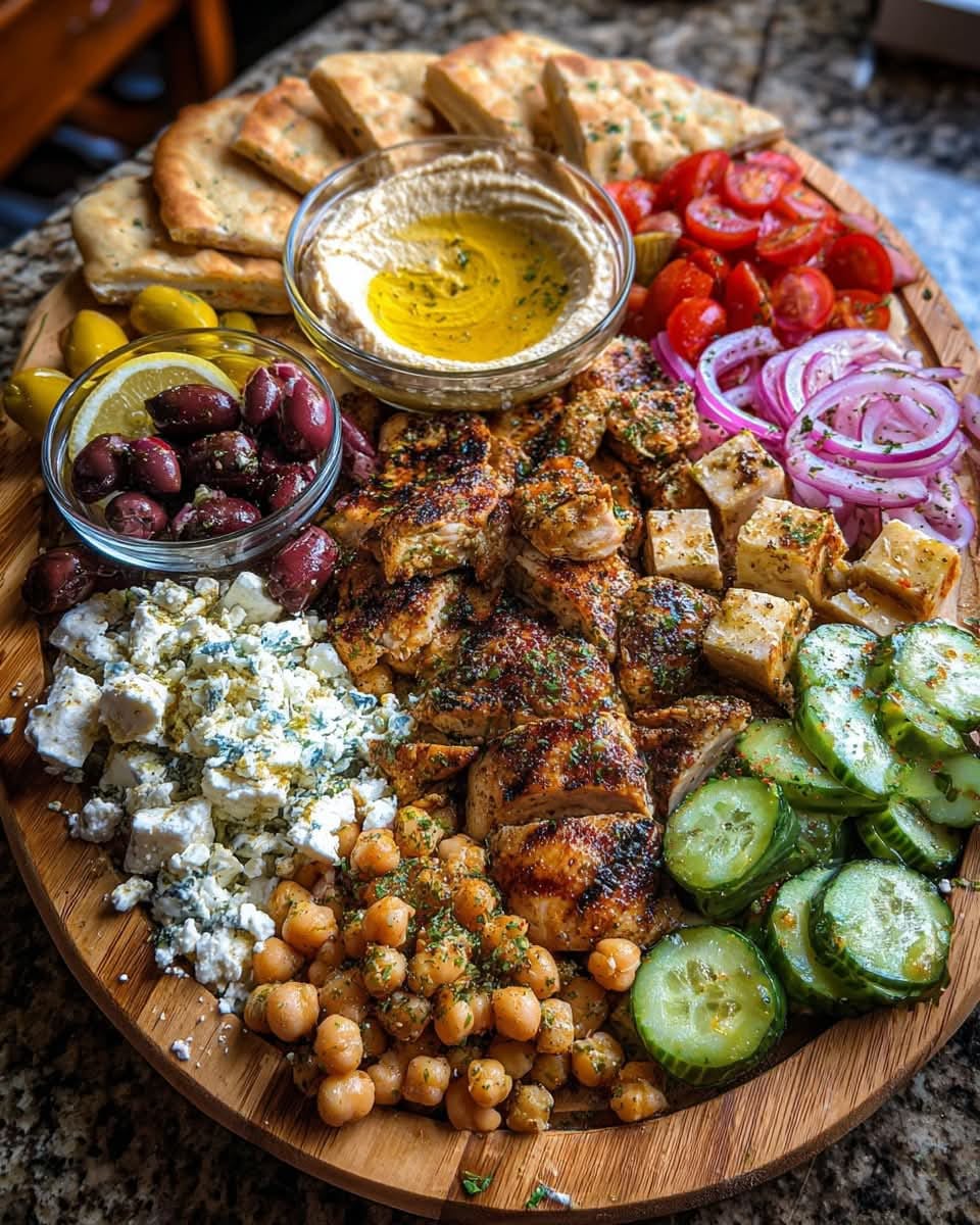 The Mediterranean Greek Chicken Mezze Platter with Honey Drizzle is a colorful, balanced dish that blends savory, briny, creamy, and sweet flavors in one spread. It’s easy to put together, customizable for different diets, and perfect for sharing. Whether you serve it as a family dinner, a casual party board, or a picnic-friendly meal, this platter is both satisfying and fun to eat.