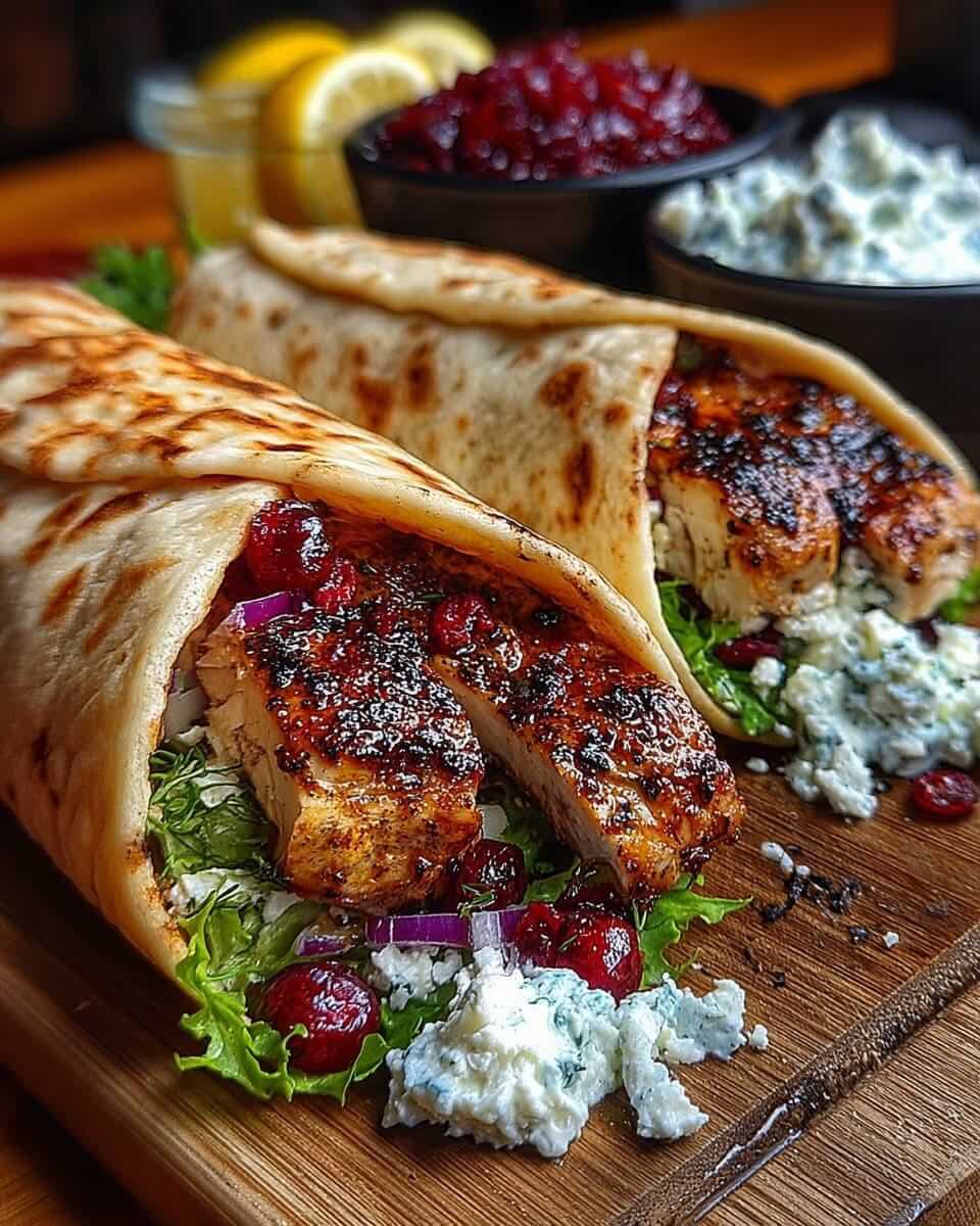 Mediterranean Greek Chicken Souvlaki Wraps with Cranberry Tzatziki