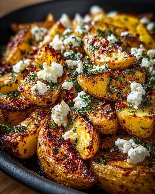 Mediterranean Greek Roast Potatoes with Lemon and Feta