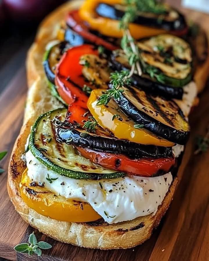 This Mediterranean-inspired panini combines smoky grilled vegetables with creamy burrata cheese, fresh pesto, and a drizzle of balsamic glaze, all pressed between hearty slices of rustic bread. It’s the perfect balance of charred, creamy, and tangy flavors — a café-style sandwich you can make at home. Great for lunch, a light dinner, or even entertaining.
