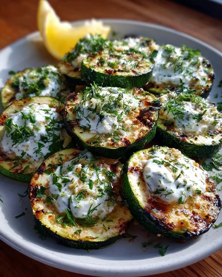 Mediterranean Grilled Zucchini Rounds with Lemon Herb Yogurt