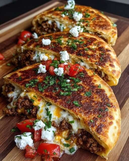 Mediterranean Ground Beef Flatbread Pockets are a practical, flavor-packed meal that works for lunch, dinner, or casual gatherings. Warm flatbreads are filled with well-seasoned ground beef, herbs, and vegetables, then finished with fresh toppings and a creamy sauce. The Mediterranean influence comes through in the use of olive oil, garlic, spices, and bright herbs, creating a filling that is savory without feeling heavy. These pockets are easy to assemble, easy to customize, and easy to eat, which makes them a reliable option for busy days or relaxed family meals. Served fresh and warm, they offer comfort, balance, and bold flavor in every bite.