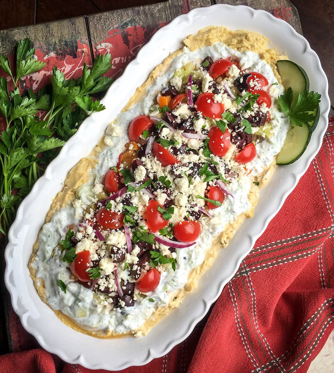 This Mediterranean Layer Dip is creamy, refreshing, and full of flavor—the perfect healthy snack or party appetizer!