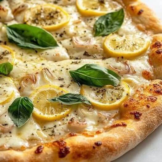 This Mediterranean-inspired pizza is a stunning mix of creamy cheese, roasted garlic, thin lemon slices, and fresh basil on a crisp, golden crust. It combines the tangy brightness of citrus with the mellow sweetness of roasted garlic and the earthy aroma of basil. With no tomato sauce in sight, it’s a white pizza (pizza bianca) that delivers bold flavor with a light and elegant touch — perfect for summer evenings, Mediterranean-themed dinners, or whenever you want to impress with something unique yet simple.