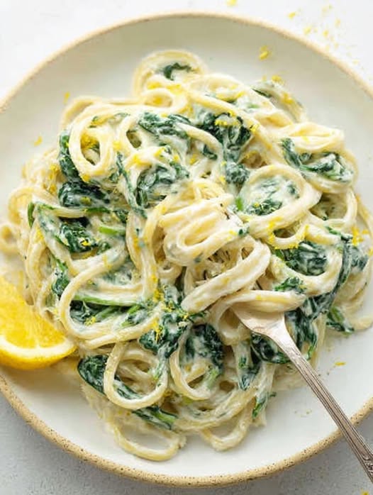 Mediterranean Lemon–Spinach Creamy Linguine