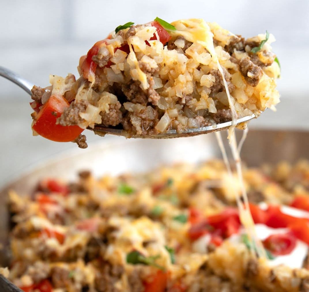 Add the riced cauliflower to the skillet. Mix well to combine. Cook for 5–6 minutes, stirring occasionally, until the cauliflower is tender but not mushy.