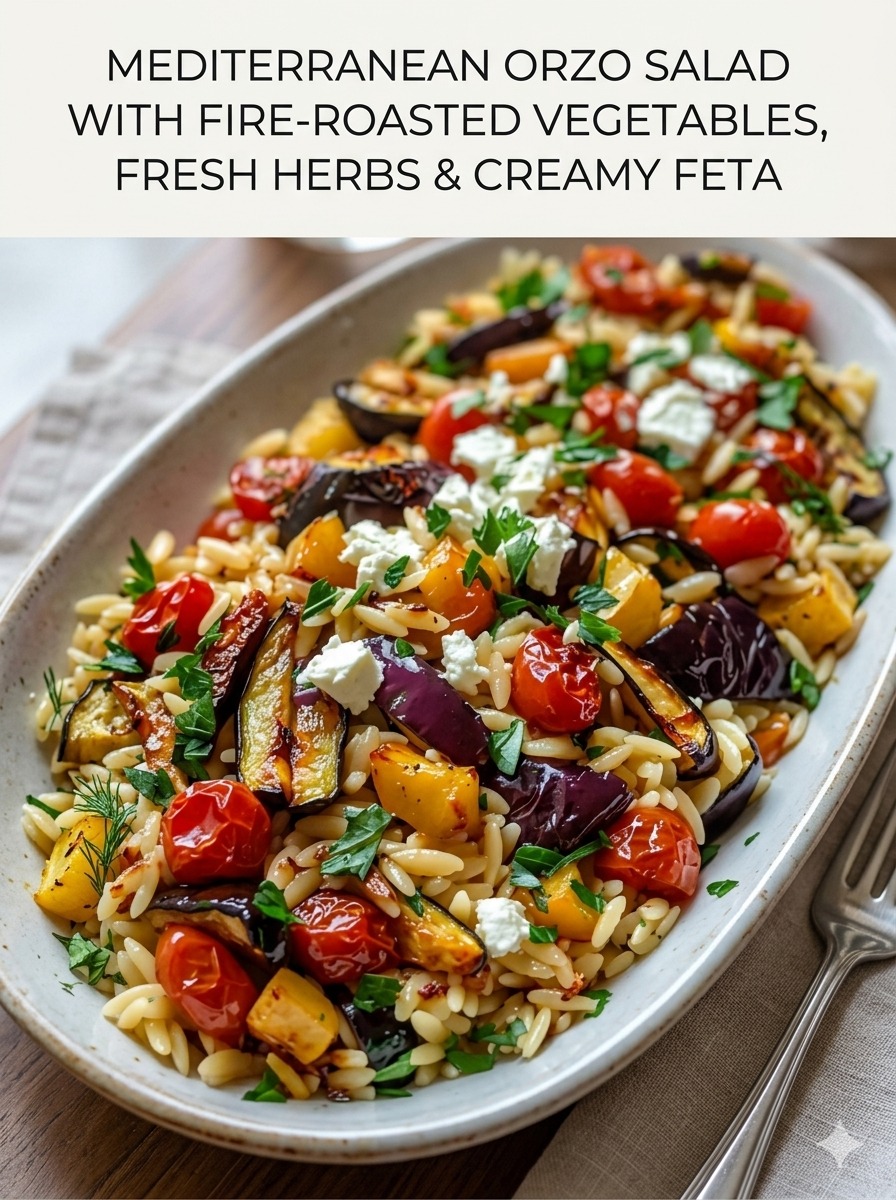 This Mediterranean orzo salad is bright, hearty, and packed with bold roasted flavors. Tender orzo pasta is tossed with smoky, fire-roasted vegetables, juicy tomatoes, creamy feta, and a fresh herb mix that brings everything to life. A zesty lemon-garlic dressing ties it all together, making this salad perfect for meal prep, picnics, or a light yet satisfying dinner. It’s one of those dishes that tastes even better after sitting for a bit, allowing all the flavors to blend beautifully.