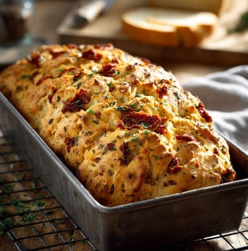 This Mediterranean-inspired bread is bursting with flavor, combining the tangy sweetness of sun-dried tomatoes with aromatic herbs and a soft, tender crumb. Oven-baked to golden perfection, it’s perfect for breakfast, a savory snack, or as a side for soups, stews, and Mediterranean spreads. The rich flavor from sun-dried tomatoes pairs beautifully with fresh rosemary, thyme, and oregano, making every slice aromatic and satisfying. Its rustic texture and vibrant appearance make it a standout addition to any table.