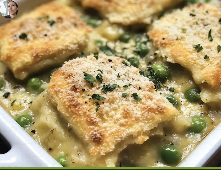 Mediterranean Peas with Parmesan Cobbler is a cozy yet vibrant dish that combines sweet green peas, Mediterranean herbs, and creamy sauce, all baked under a fluffy, cheesy Parmesan biscuit topping. This savory cobbler is a twist on traditional comfort food, offering the freshness of Mediterranean flavors with the warmth of a baked casserole.