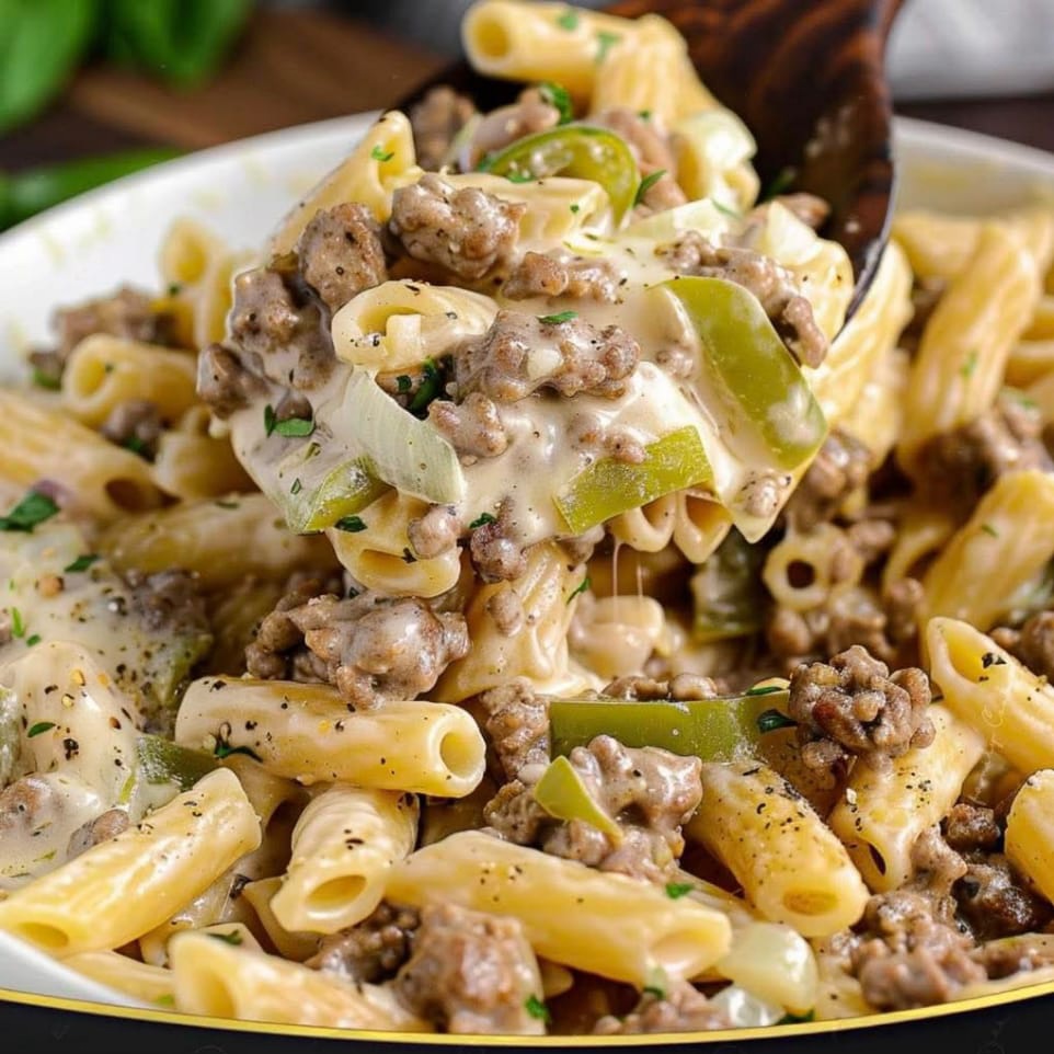This Mediterranean Philly Cheesesteak Pasta brings a fresh, flavorful upgrade to the classic Philly cheesesteak. Juicy strips of steak (or ground beef), sautéed onions and peppers, sun-dried tomatoes, garlic, and tender pasta come together in a creamy, cheesy sauce with Mediterranean flair. It’s rich, satisfying, and loaded with vibrant color and flavor — the ultimate fusion comfort food!