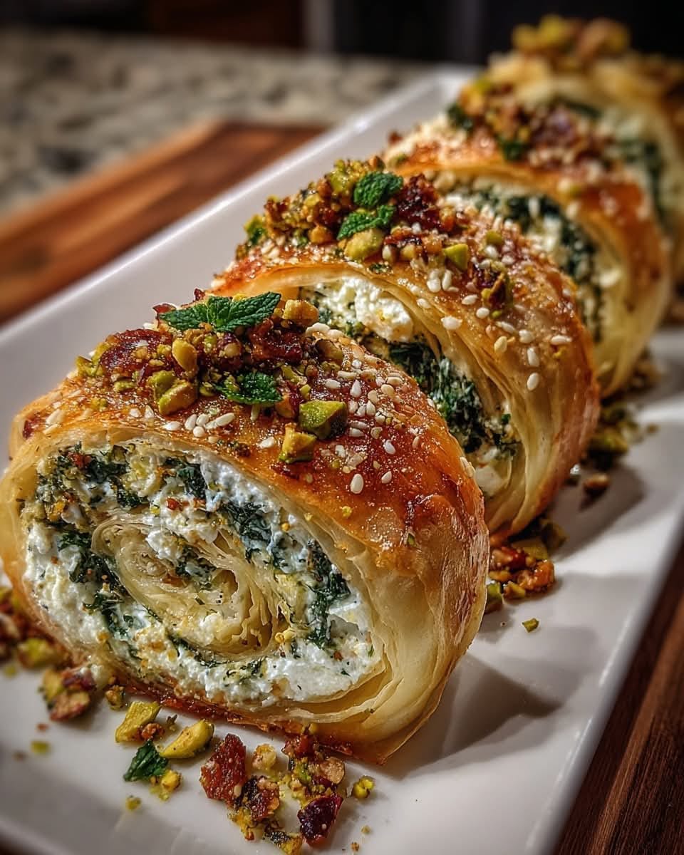 Mediterranean Pistachio-Feta Spanakopita Roulade