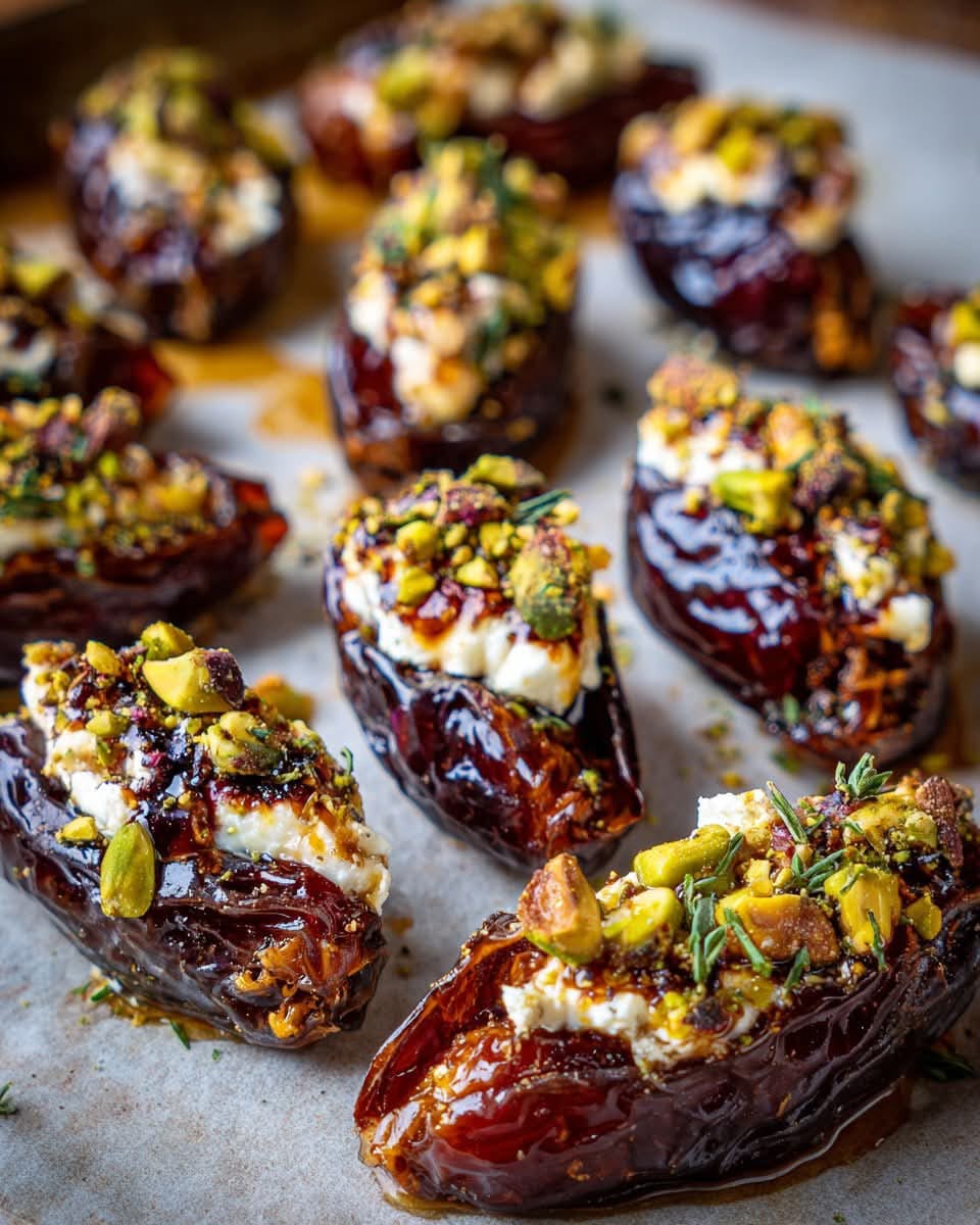 This Mediterranean Roasted Goat Cheese Stuffed Dates recipe is the perfect balance of sweet, savory, and creamy. The natural caramel flavor of Medjool dates pairs beautifully with the tang of goat cheese, while honey and pistachios add a touch of richness and crunch. Whether served as an elegant appetizer, a light dessert, or part of a mezze spread, these little bites always impress. The roasting step slightly caramelizes the dates and warms the cheese, creating an irresistible flavor contrast that feels indulgent but is surprisingly simple to make.