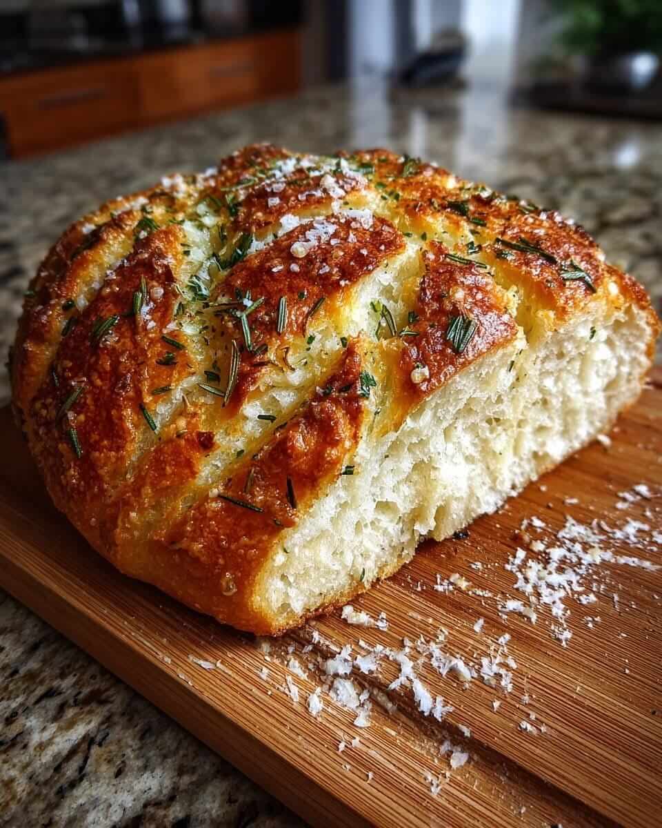 Mediterranean Rustic No-Knead Rosemary Garlic Bread