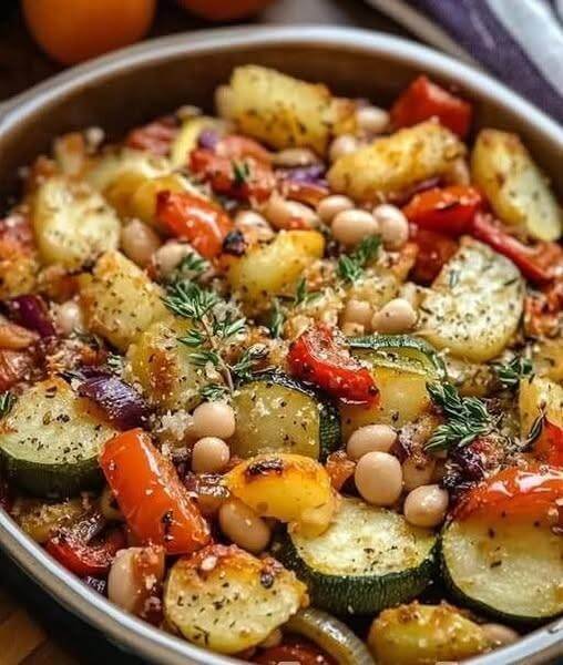 This Mediterranean Rustic Roasted Vegetable Bake with Cannellini Beans is the kind of dish that celebrates simple, wholesome ingredients. Think tender potatoes, colorful bell peppers, and zucchini roasted until caramelized and golden, all tossed with creamy cannellini beans and a drizzle of olive oil scented with Mediterranean herbs.