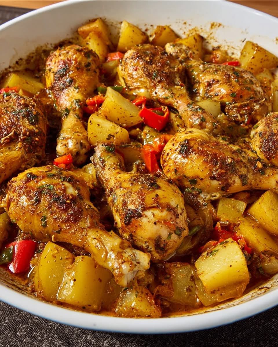 Mediterranean Savory Oven-Roasted Chicken Drumsticks with Rustic Potatoes & Sweet Peppers is a wholesome, one-pan meal that’s packed with flavor and color. The chicken comes out juicy with a fragrant spice blend, while the vegetables soak up the lemony tomato sauce. It’s hearty enough to serve on its own but also pairs beautifully with a light salad or crusty bread. Simple to prepare, it’s an ideal recipe for both weeknight dinners and relaxed weekend meals.