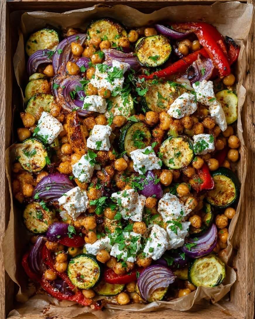 Mediterranean Sheet-Pan Zucchini & Chickpea Bake with Feta