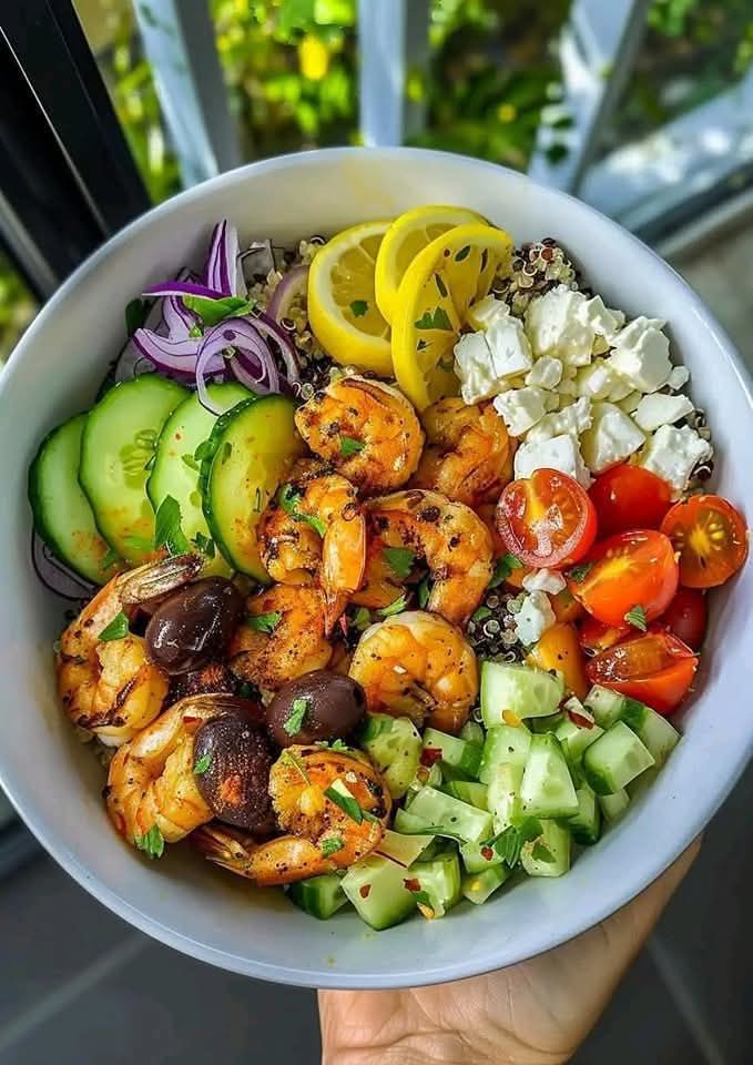 Enjoy your Mediterranean Shrimp Bowl with Quinoa!