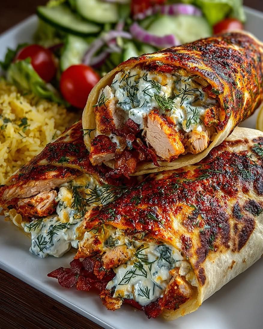 Mediterranean Spiced Chicken Wrap with Creamy Dill Feta