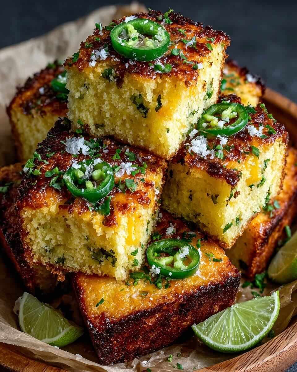 This Mediterranean-inspired Spicy Jalapeño Cornbread brings together the earthy sweetness of cornmeal with a lively kick from fresh jalapeños, balanced perfectly by a drizzle of sweet lime honey. It’s a creative twist on traditional cornbread—rustic yet bright, soft yet slightly crumbly, and irresistibly aromatic.