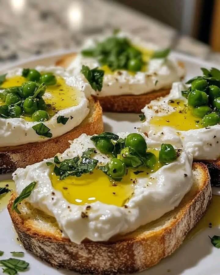 Mediterranean Spring Pea & Burrata Crostini Recipe