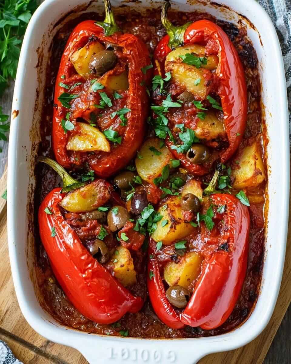 Mediterranean stuffed banana red peppers are the perfect example of how healthy eating doesn’t have to compromise flavor. Each bite bursts with the freshness of crisp vegetables, the richness of olive oil, and the tang of feta — all nestled in the natural sweetness of roasted banana peppers. They’re simple enough for a weeknight dinner yet elegant enough for entertaining. Whether served hot from the oven or enjoyed cold the next day, they deliver sunshine-on-a-plate Mediterranean goodness any time of year.