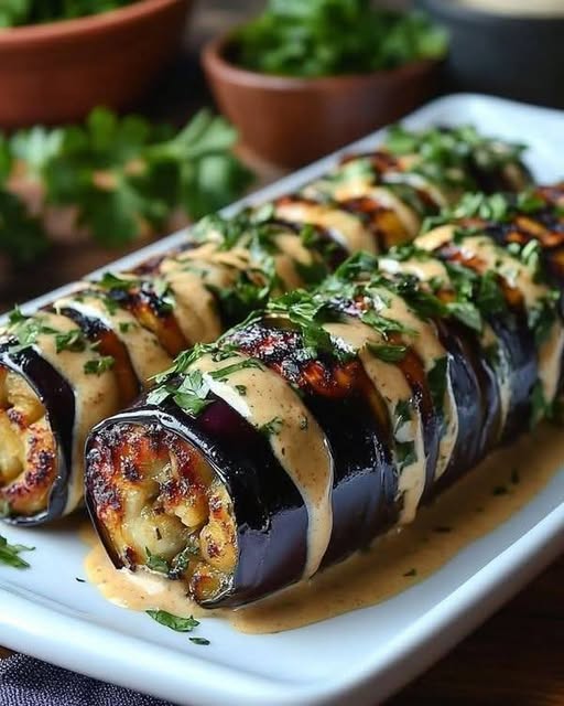 Mediterranean Stuffed Eggplant with Creamy Tahini Sauce