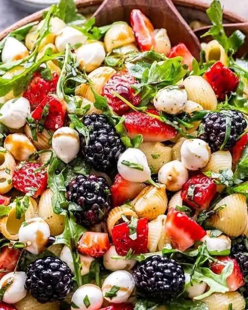 This bright and fresh Mediterranean-inspired pasta salad balances sweet berries, creamy mozzarella, peppery arugula, and fragrant basil. Tossed with a simple balsamic glaze, it’s a colorful, refreshing, and utterly crave-worthy dish — perfect for picnics, potlucks, or a light summer meal.