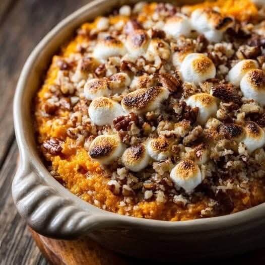 This Mediterranean-inspired Sweet Potato Casserole takes a comforting classic and gives it a lighter, more balanced twist. The creamy sweet potato base blends warm spices, vanilla, and a touch of natural sweetness, while the topping adds a mix of crunch and caramelized richness from pecans, brown sugar, and butter. A small layer of golden marshmallows ties it all together, offering both texture and nostalgia. Perfect for festive gatherings or cozy family dinners, this dish combines Mediterranean warmth with wholesome comfort.