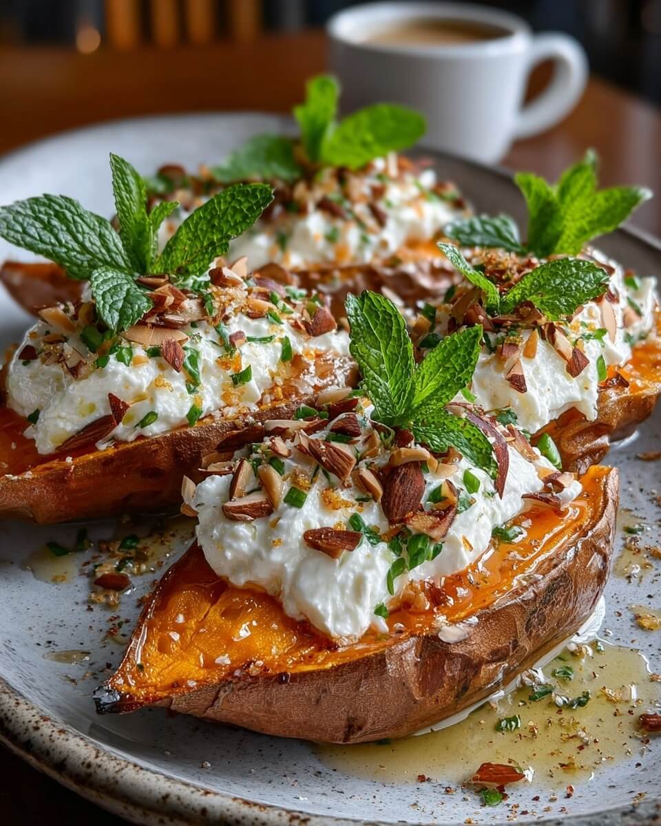Mediterranean Sweet Potatoes Stuffed with Orange Zest Ricotta & Almonds are a simple yet elegant dish that blends natural sweetness, creamy richness, and a satisfying crunch. The roasted sweet potatoes serve as a perfect base for the vibrant ricotta filling, while almonds and honey add texture and subtle warmth. Bright, fresh, and visually appealing, this recipe works for weeknight dinners, holiday sides, or a vegetarian main. Every bite delivers layers of flavor and texture that are unmistakably Mediterranean, making it a dish you’ll return to time and again.
