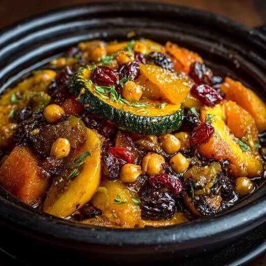 This Mediterranean-inspired tajine balances sweet and savory flavors beautifully. Tender chunks of squash, creamy chickpeas, and soft raisins soak up a warmly spiced sauce that smells as good as it tastes. It’s the kind of dish that feels comforting yet bright, perfect for cool evenings or relaxed weekend dinners. A tajine is traditionally slow-cooked in a clay pot, but this version works wonderfully in a Dutch oven or heavy-bottomed pan. Serve it with couscous, rice, or flatbread to make it a complete meal.