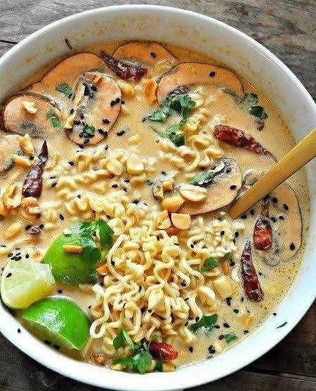 This Mediterranean-inspired Vegan Spicy Thai Peanut Ramen is a flavor explosion in a bowl—where Southeast Asian spice meets Mediterranean plant-based goodness. Creamy peanut butter, fiery red curry paste, sesame oil, and fresh aromatics create a luxurious, umami-rich broth. Toss in slurpable vegan ramen noodles, crisp veggies like kale and bell peppers, and top it all with roasted peanuts, herbs, sesame seeds, and a squeeze of fresh lime. It’s the perfect blend of creamy, spicy, savory, and fresh—made entirely dairy-free, gluten-free adaptable, and bursting with color.