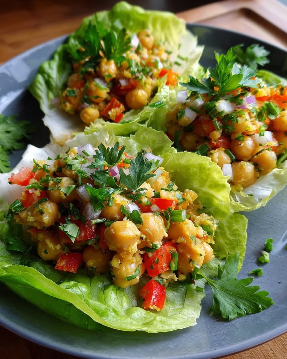Serve: Spoon the chickpea mixture into individual lettuce leaves and serve immediately.