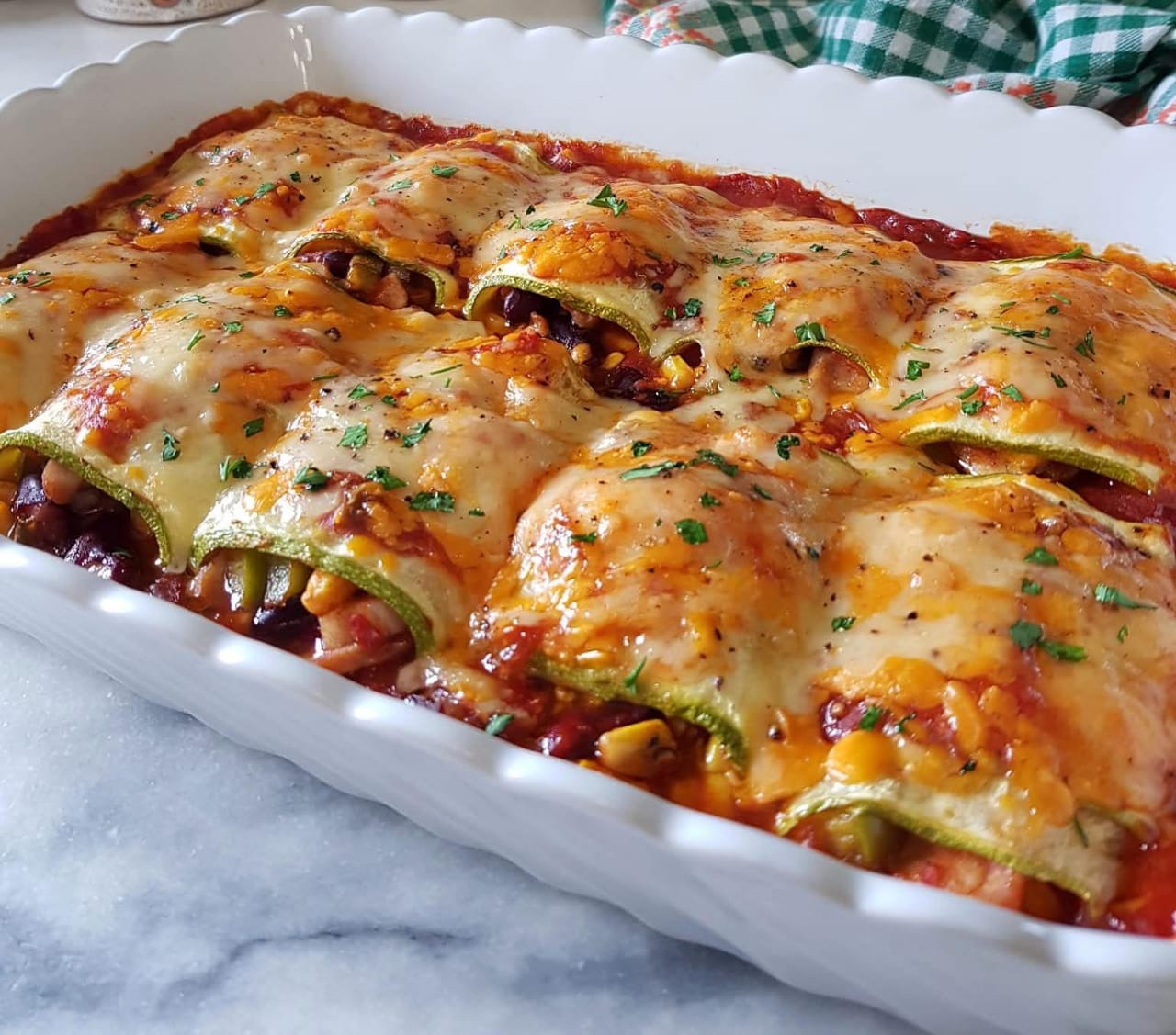 These zucchini enchilada roll ups blend the flavors of a classic Mexican-style filling with bright Mediterranean notes. Thin zucchini ribbons stand in for tortillas, keeping the dish light but still satisfying. The filling is simple, the sauce adds warmth, and the cheese ties it all together in the oven. It’s a great weeknight option when you want something cozy, low-carb and full of flavor.