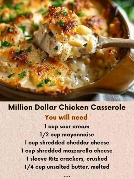 Million Dollar Chicken Casserole is a delicious and comforting dish that’s perfect for gatherings or weeknight dinners. Here’s a simple recipe to try: