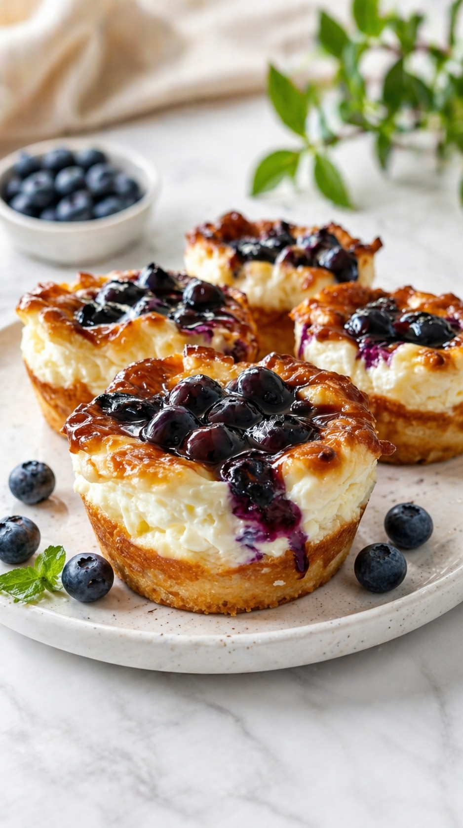 These mini blueberry cheesecake cups are rich, creamy, and perfectly portioned desserts with a buttery base, smooth cheesecake filling, and a sweet-tangy blueberry topping. They’re ideal for parties, tea-time treats, or elegant desserts that look as good as they taste.