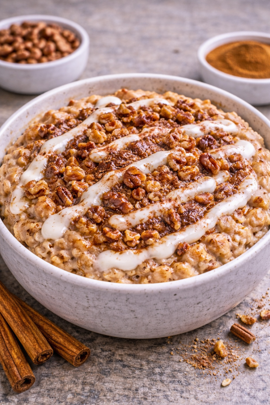 This Cinnamon Roll Oatmeal is a cozy, healthy breakfast that tastes like dessert—but without any dairy or added sugar. Creamy oats are infused with warm cinnamon spice, naturally sweetened, and topped with a rich, dairy-free “icing” drizzle. It delivers all the comforting flavors of a cinnamon roll in a nourishing, wholesome bowl—perfect for clean eating, weight loss, or plant-based diets.