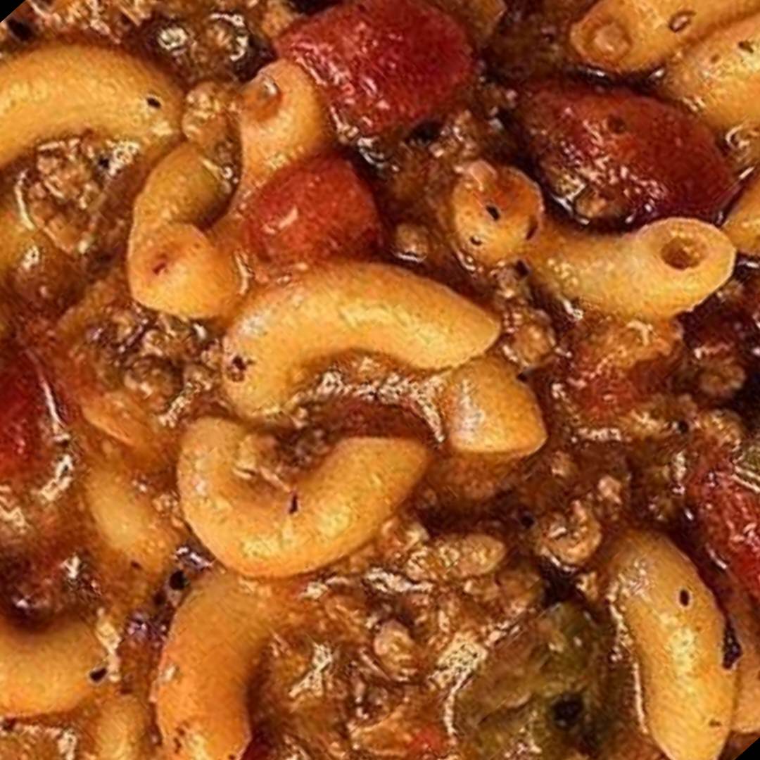 This recipe is completely different from the rest of the world. It is a hearty beefy macaroni dish with lots of tomatoes. Depending on the part of the United States that you grew up in this also goes by the name Chop Suey or Slumgullion.