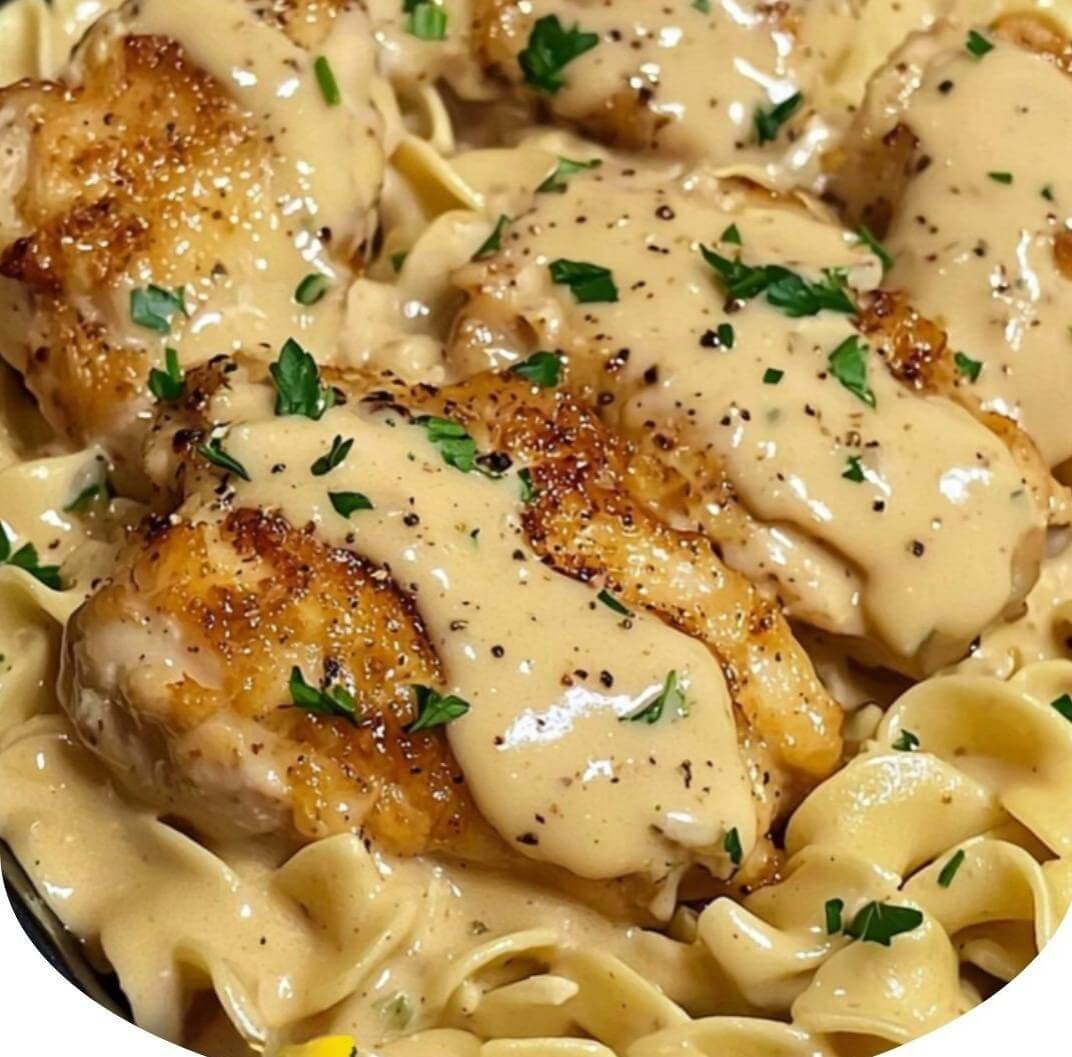 One-Pan Creamy Garlic Butter Chicken with Egg Noodles (Air Fryer)