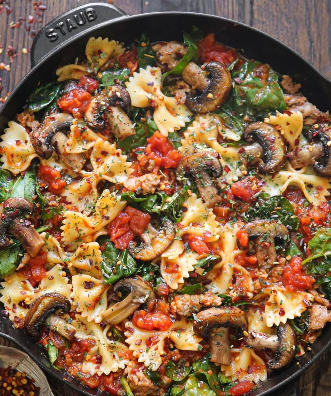 One-Pan Spinach and Mushroom Pasta with Sausage