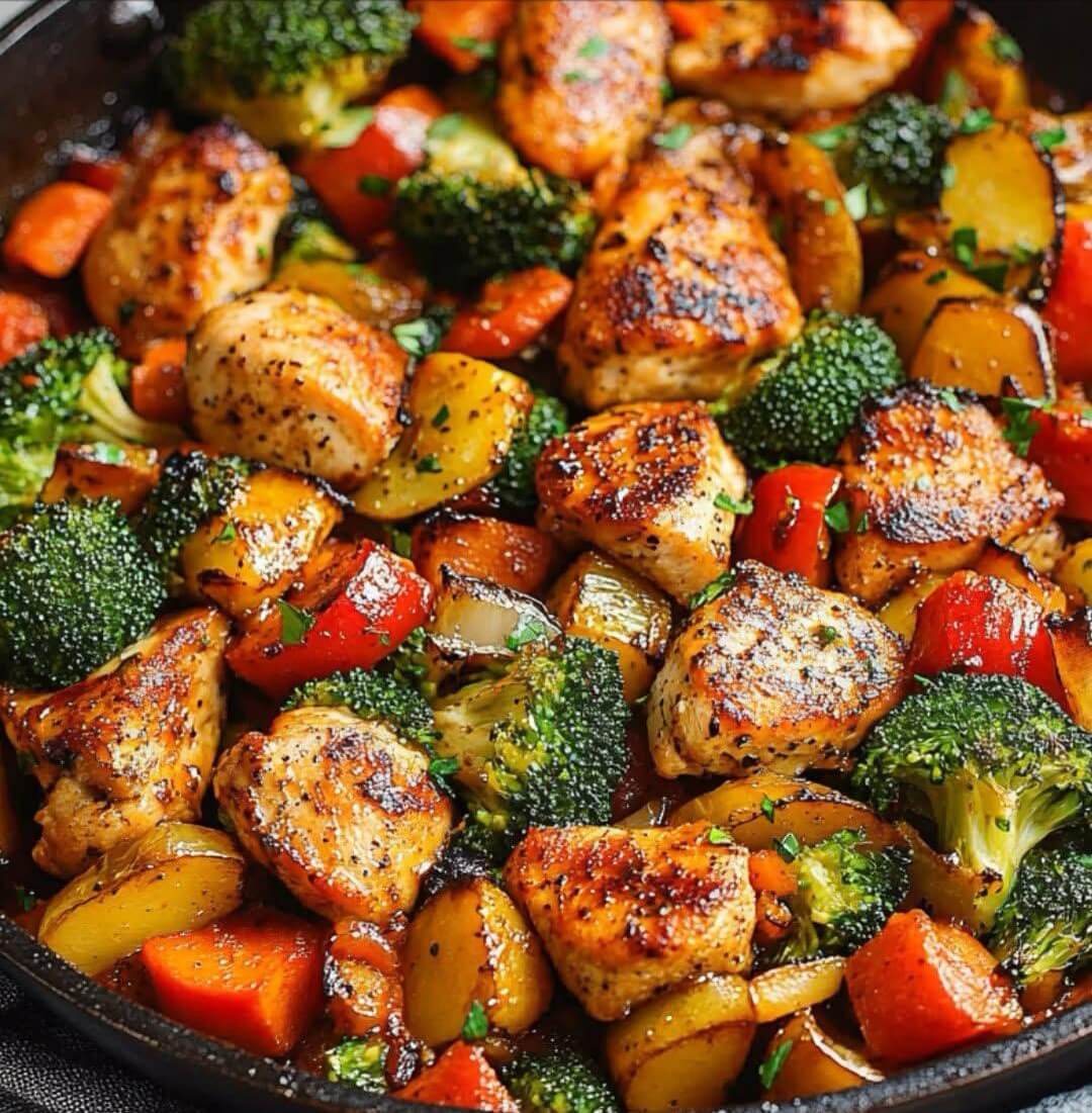 This One-Pot Chicken and Vegetables Skillet is a quick and easy meal packed with protein fiber and bold flavors. Perfect for a busy weeknight this dish is low-carb gluten-free and full of nutritious ingredients. With tender juicy chicken and crispy roasted vegetables seasoned to perfection it is a wholesome meal the whole family will love.