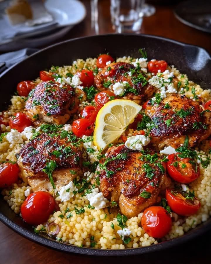 One-Skillet Mediterranean Chicken with Lemon Couscous