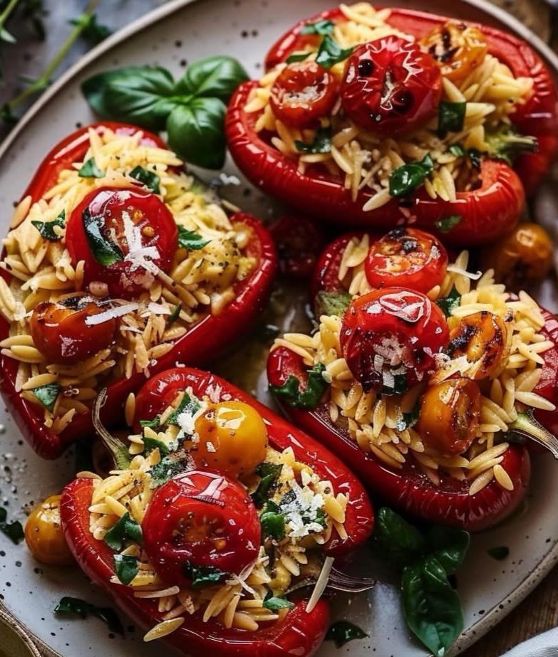 Orzo-Stuffed Roasted Peppers are a simple yet flavorful dish that brings together fresh wholesome ingredients in a satisfying way. The combination of tender roasted peppers savory orzo juicy cherry tomatoes and aromatic herbs creates a delicious and well-balanced meal that is both comforting and nutritious.Enjoy these Orzo-Stuffed Roasted Peppers as a warm and hearty meal that is packed with flavor and nutrition Try it today and bring a taste of the Mediterranean to your table