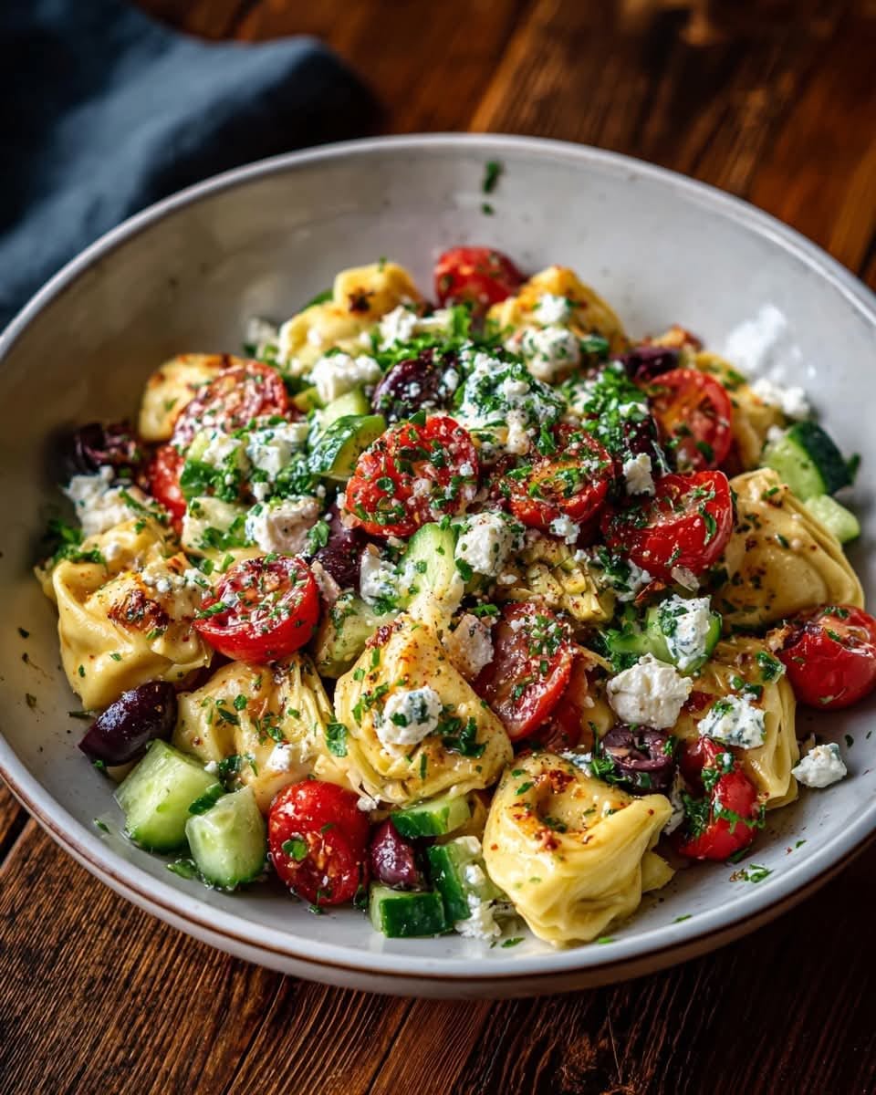 Mediterranean Tortellini Salad with Artichokes & Olives This Mediterranean-inspired tortellini salad is a fresh and hearty twist on the classic pasta salad. Cheese-filled tortellini pairs beautifully with marinated artichokes, Kalamata olives, crisp cucumber, and juicy cherry tomatoes. Tossed in a simple olive oil and red wine vinegar dressing, then topped with feta and fresh herbs, … Read more