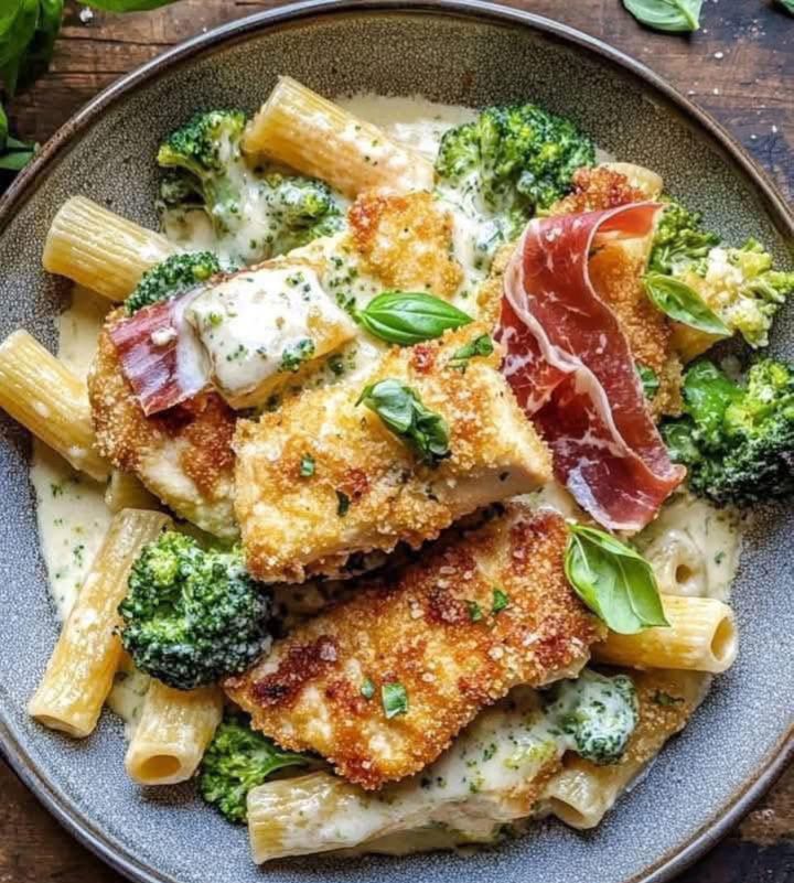 This rich yet balanced pasta dish brings together the best of both worlds: lean, juicy chicken breast and fiber-rich broccoli and spinach, coated in a velvety parmesan cream sauce. The result is a filling, nutritious, and flavorful meal with Mediterranean flair. The name “Florentine” typically refers to dishes made with spinach — and here, it shines alongside broccoli and pasta.
