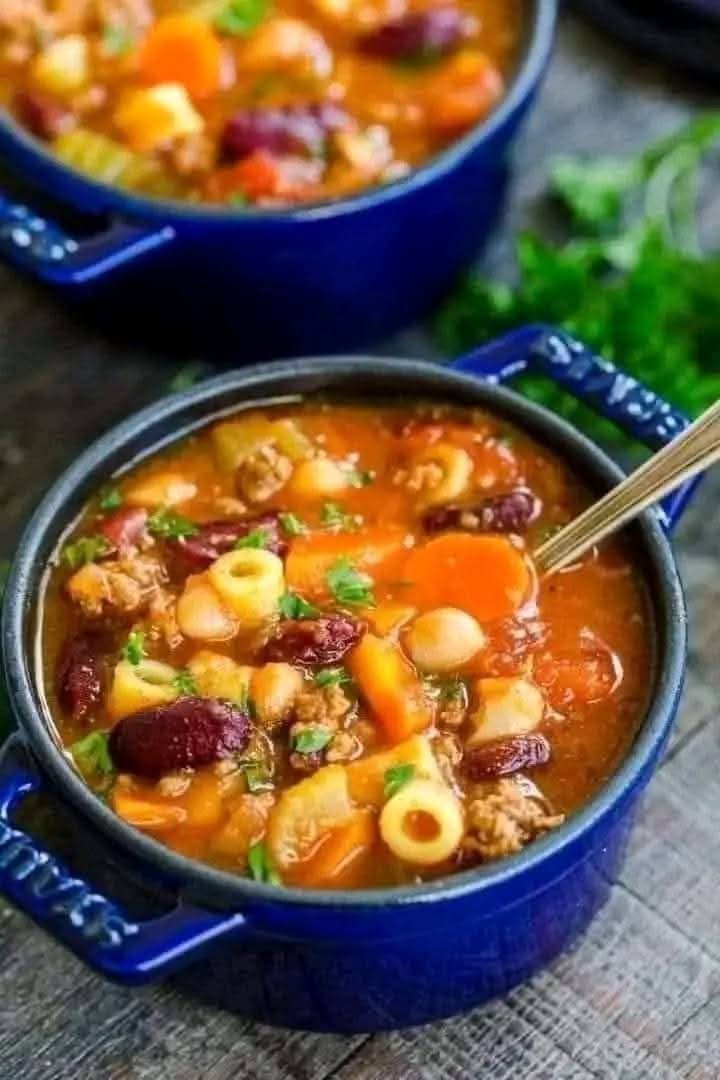 Pasta e Fagioli, which translates to “pasta and beans,” is a hearty, comforting soup originating from Italy. Olive Garden’s adaptation features ground beef, beans, tomatoes, and pasta in a rich and savory broth.