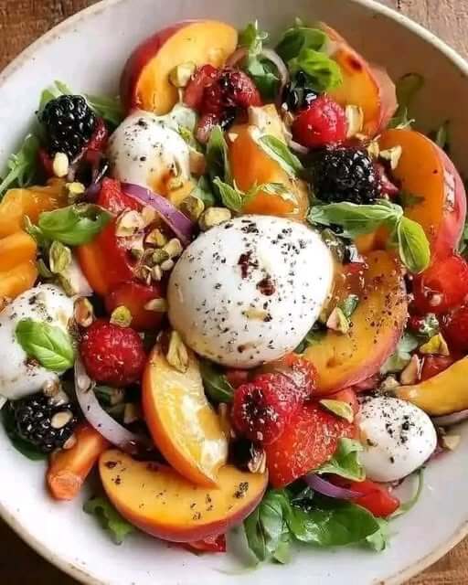 Peach Burrata Salad with Berries & Balsamic Glaze
