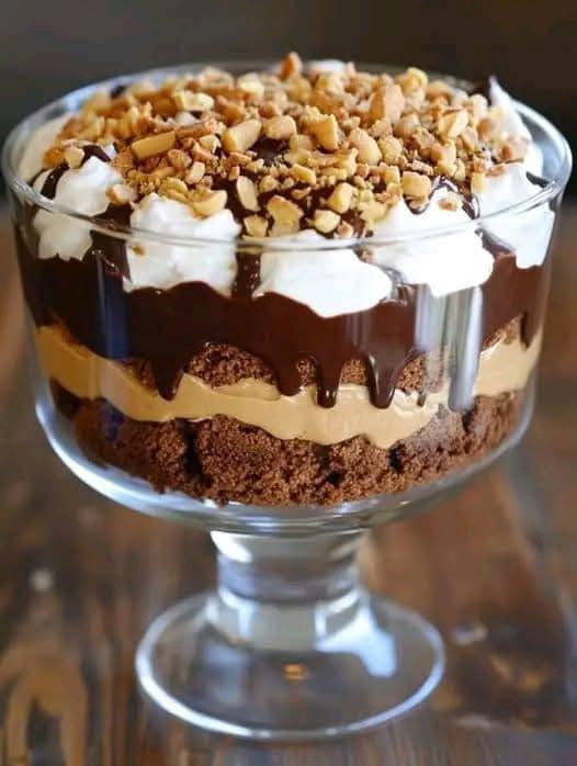 This Peanut Butter Fudge Brownie Trifle is a decadent and indulgent dessert that layers rich, fudgy brownies with creamy peanut butter mousse, chocolate pudding, and a generous topping of whipped cream and peanut butter cups. It’s the perfect dessert for peanut butter and chocolate lovers and is a guaranteed crowd-pleaser at any gathering!